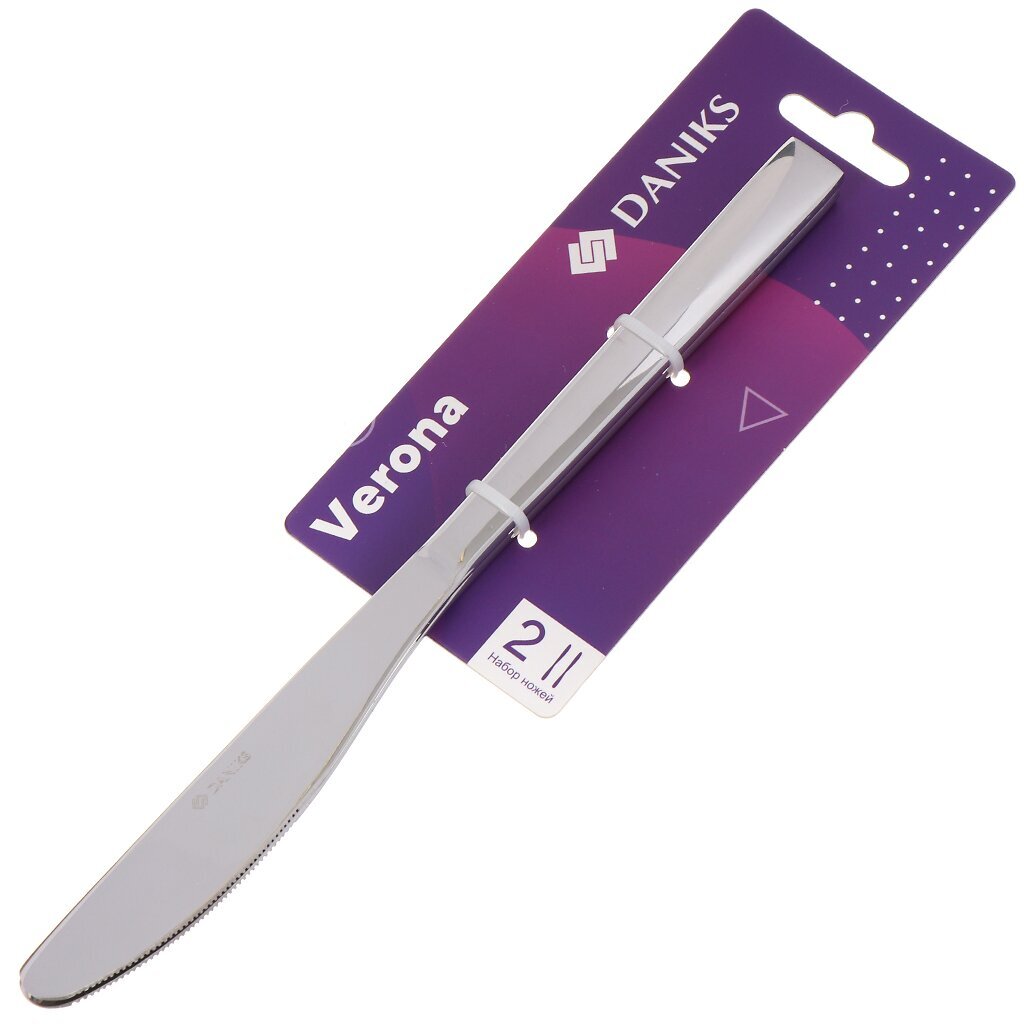 Столовые ножи Daniks Verona — 2 предмета из нержавеющей стали: современный дизайн, долговечность и идеальный выбор для сервировки дома или на даче.