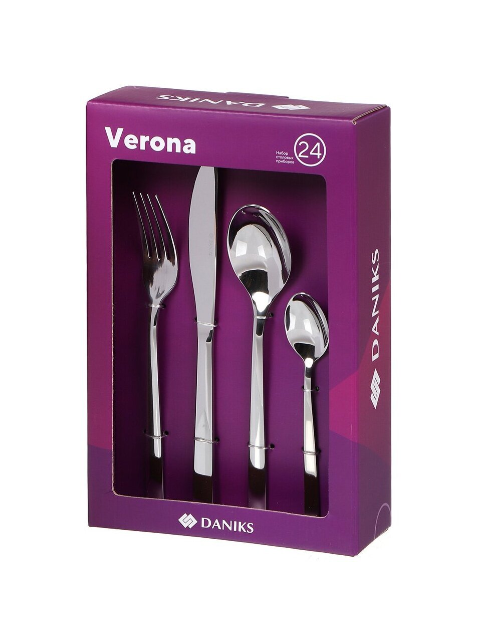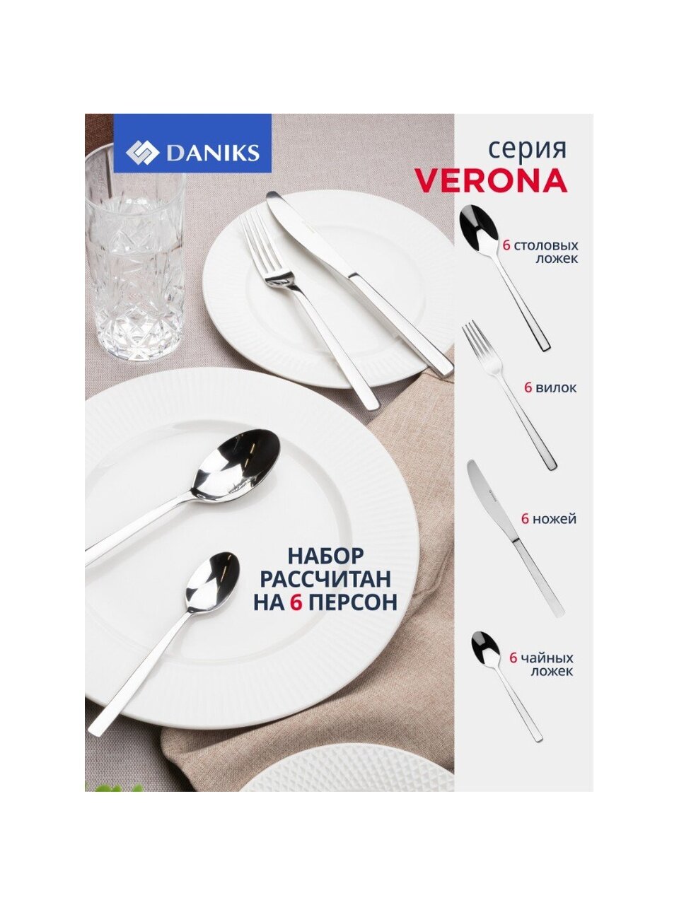 Стильный набор столовых приборов Daniks Verona: 24 предмета из нержавеющей стали для 6 персон — идеальный выбор для дома, дачи и подарка.