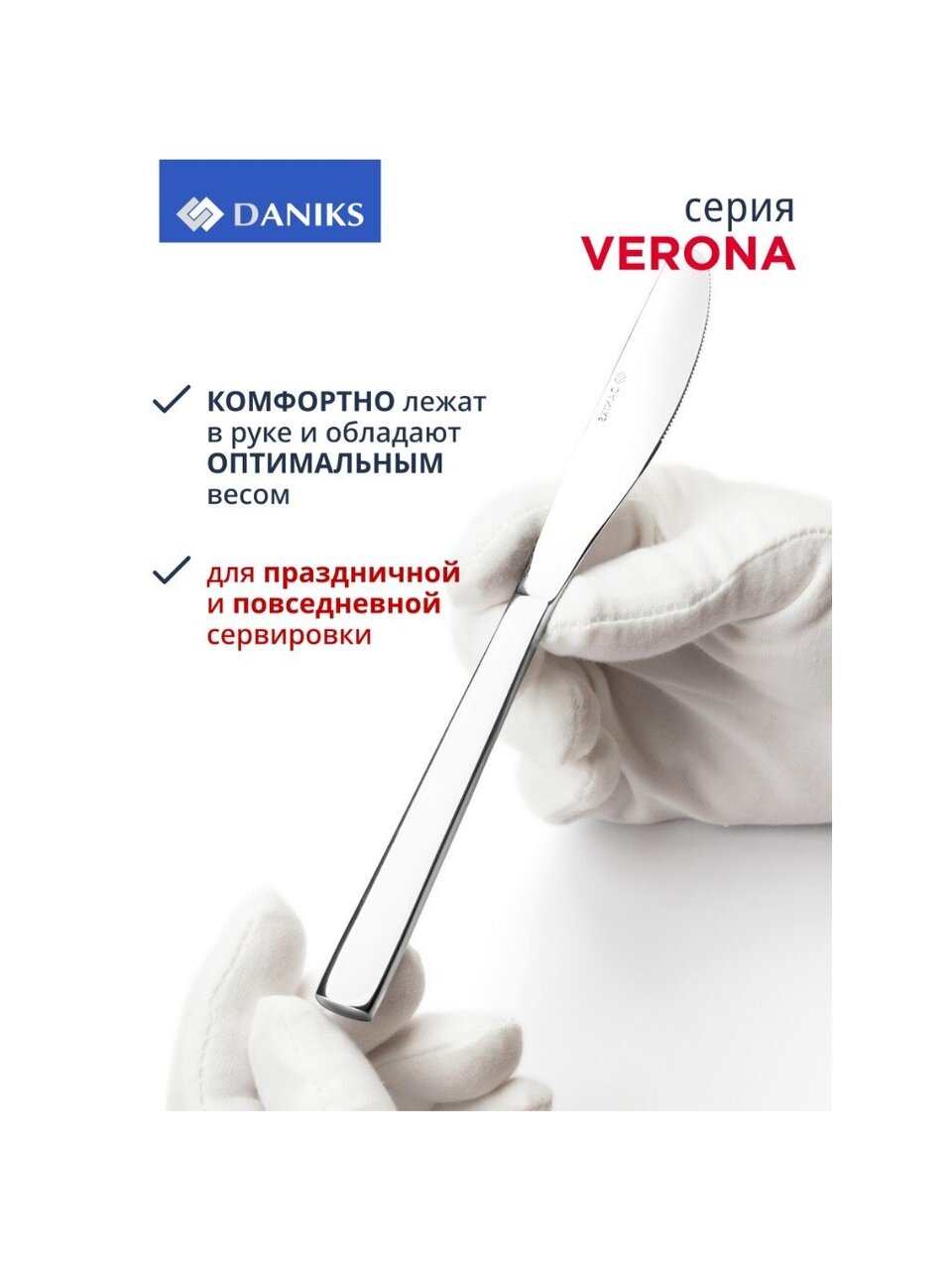 В отличие от аналогов с пластиковыми или покрытыми ручками, Daniks Verona выполнен полностью из металла, что продлевает срок службы и облегчает уход. Часто спрашивают, можно ли мыть такой набор в посудомоечной машине — производитель рекомендует ручную мойку для сохранения блеска и структуры стали. Если вы ищете, что лучше для сервировки на 8 марта или 23 февраля, обратите внимание на универсальность комплекта: лаконичный дизайн уместен и в повседневной жизни, и за праздничным столом.