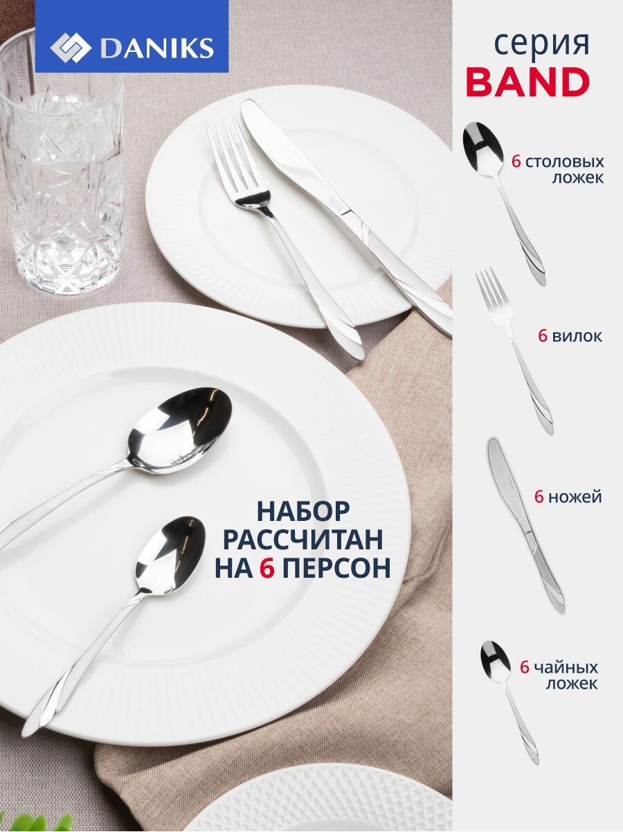 Премиальный набор столовых приборов Daniks Band: 24 предмета из нержавеющей стали в подарочной упаковке — идеальный выбор для стильного сервирования и достойного подарка.
