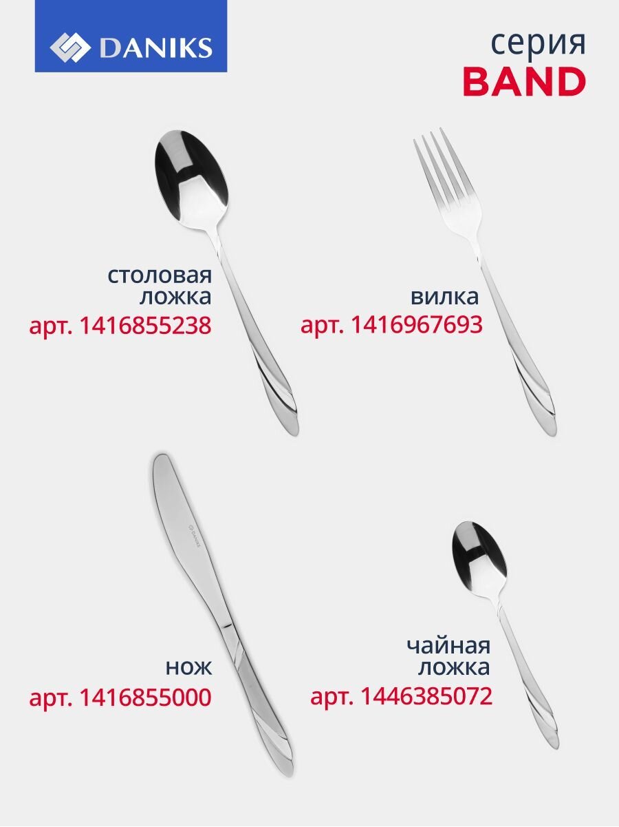 Закажите набор столовых приборов Daniks Band прямо сейчас — получите стильный аксессуар для сервировки и выгодное решение для подарка с гарантией качества.