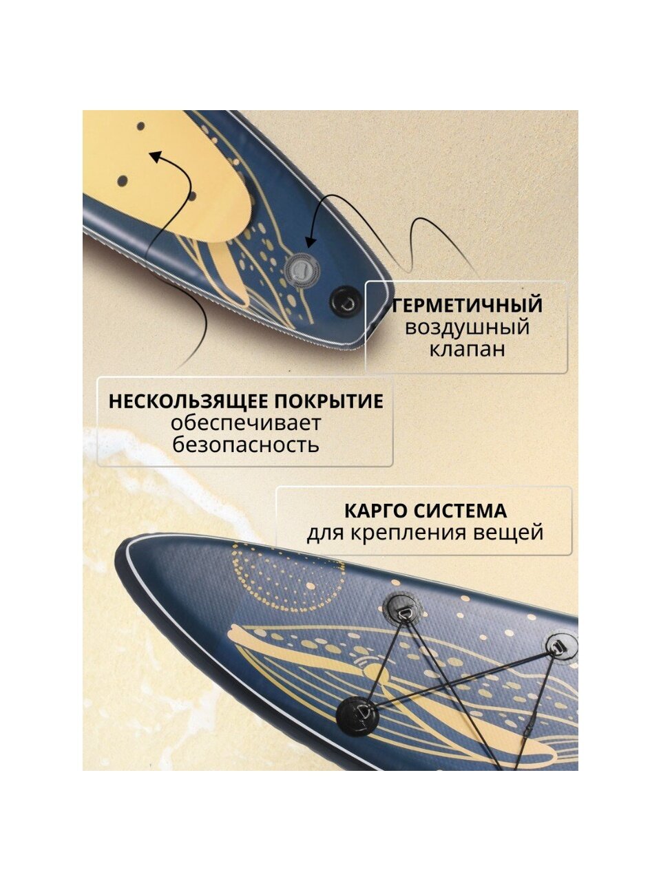 Отправляйтесь на водные приключения с уверенностью, зная, что в случае непредвиденных ситуаций у вас всегда под рукой будет ремкомплект для быстрого ремонта. Надувной сап борд SUP001 станет вашим надежным партнером для активного отдыха на воде, открывая новые горизонты и возможности для расслабления и тренировок.