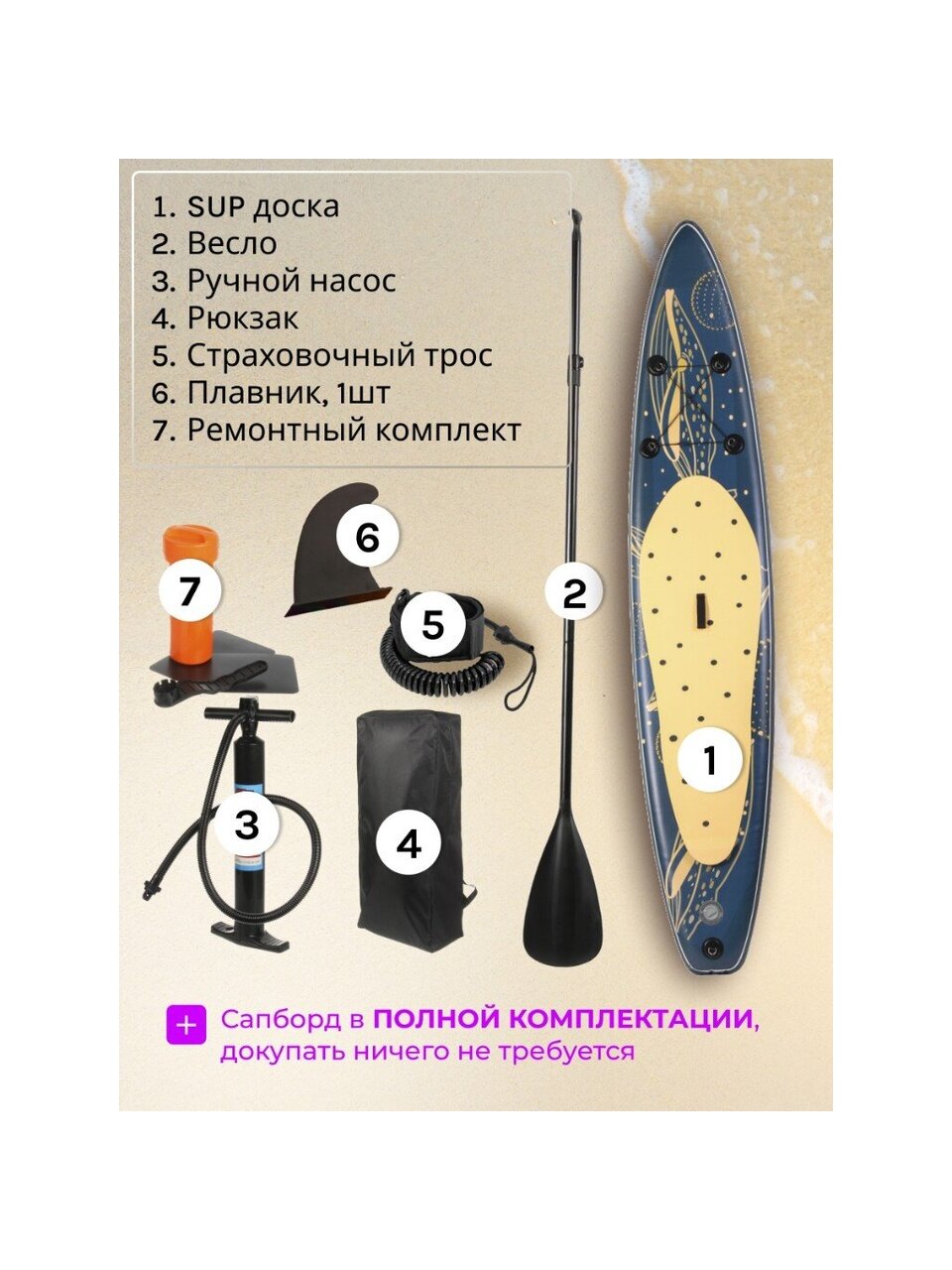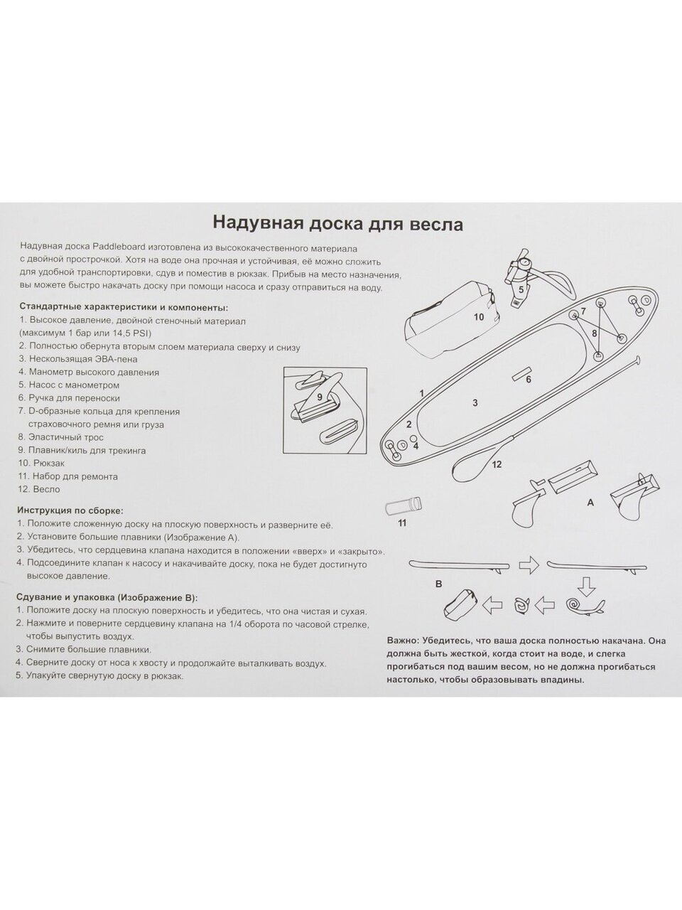 - Полная комплектация: насос, весло и лиш в комплекте.