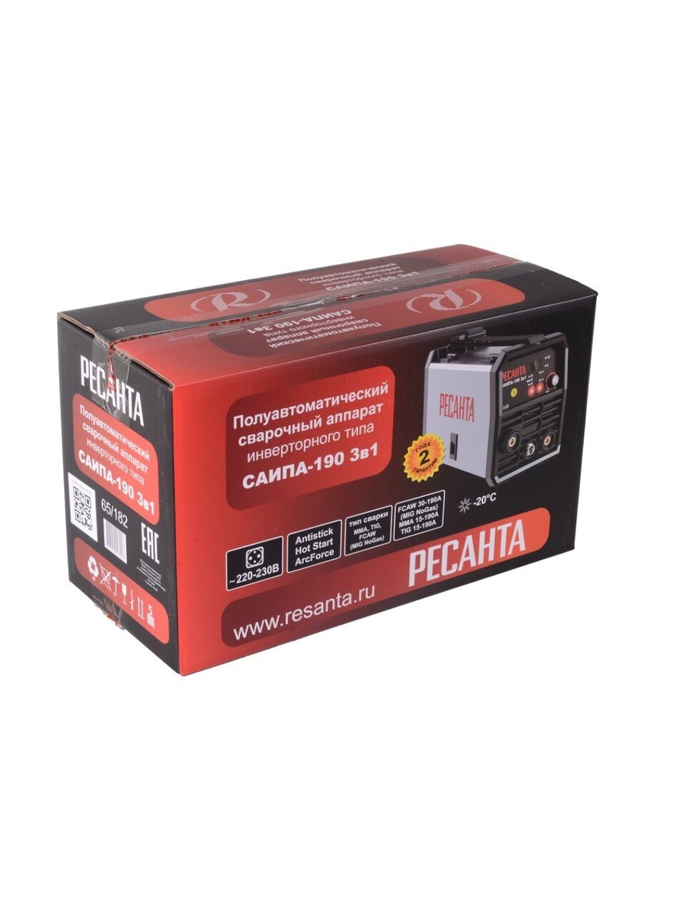 Вы можете приобрести «Сварочный аппарат инверторный, Ресанта, САИПА-190, 6 кВт, 190 А, проволока, полуавтоматическая сварка, 3в1 (MIG/MAG)» и другие товары в нашем интернет-магазине в Армавире по низким ценам и с бесплатным самовывозом.