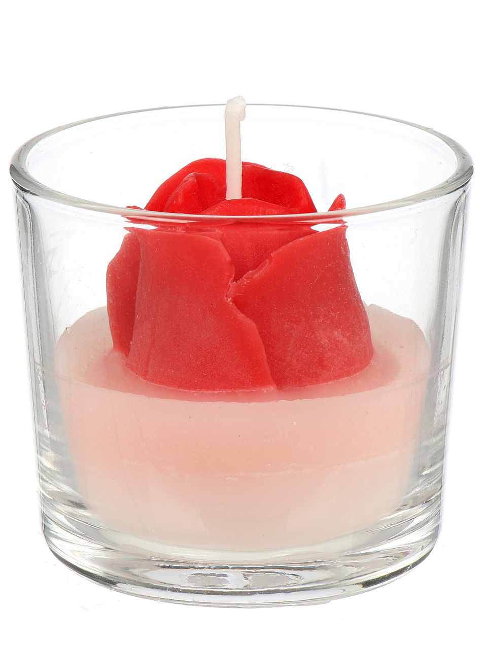 Высота — 5,5 см, ширина — 6 см, форма — круглая, поставляется в прочном стеклянном стакане, цвет — в ассортименте, с декоративным подсвечником.