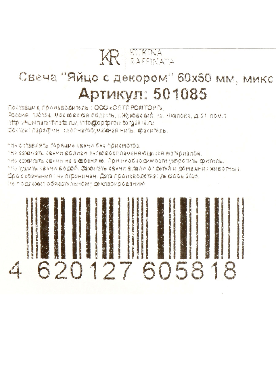 Свеча декоративная "Яйцо с декором ХВ" 50х60 мм: стильный акцент для праздника, уют в доме, отличный подарок.