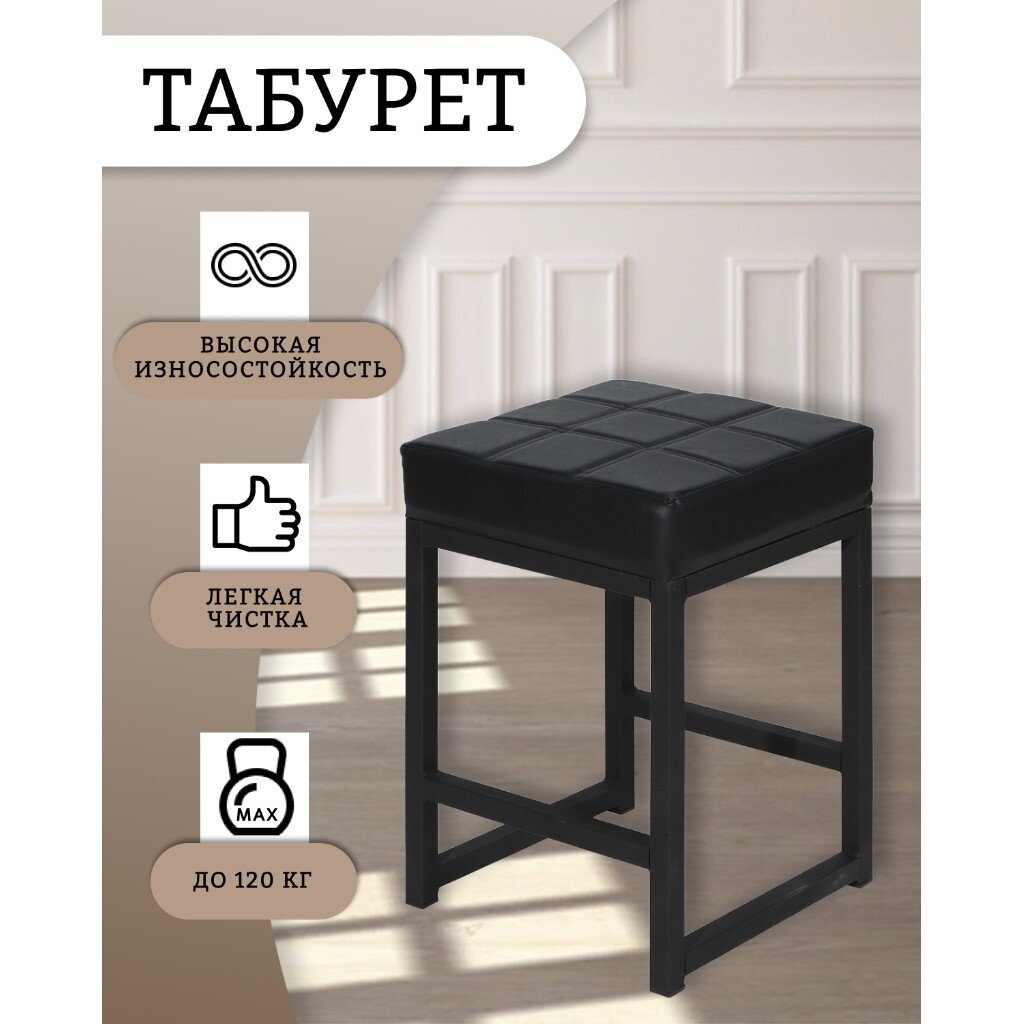 Вы можете приобрести «Табурет 355х355х520 мм, черный на черном, сиденье квадратное, винилискожа, на болтах, Модуль, Лофт» и другие товары в нашем интернет-магазине в Железногорске по низким ценам и с бесплатным самовывозом.