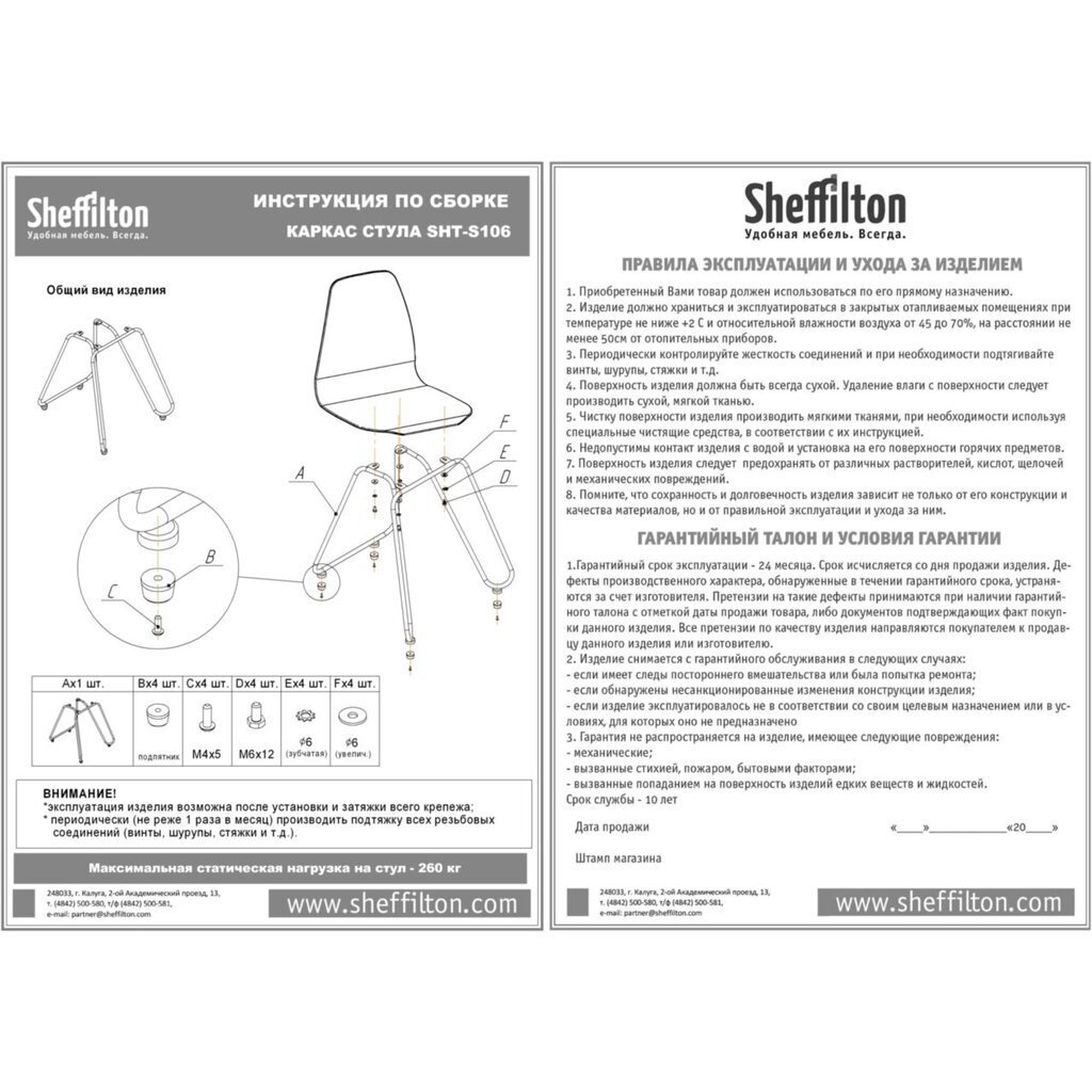 СПЕЦИАЛЬНЫЕ ПОДПЯТНИКИ каркаса обеспечивают защиту покрытия от царапин и повышают устойчивость стула. К каркасу приложен комплект крепежа и схема сборки.
