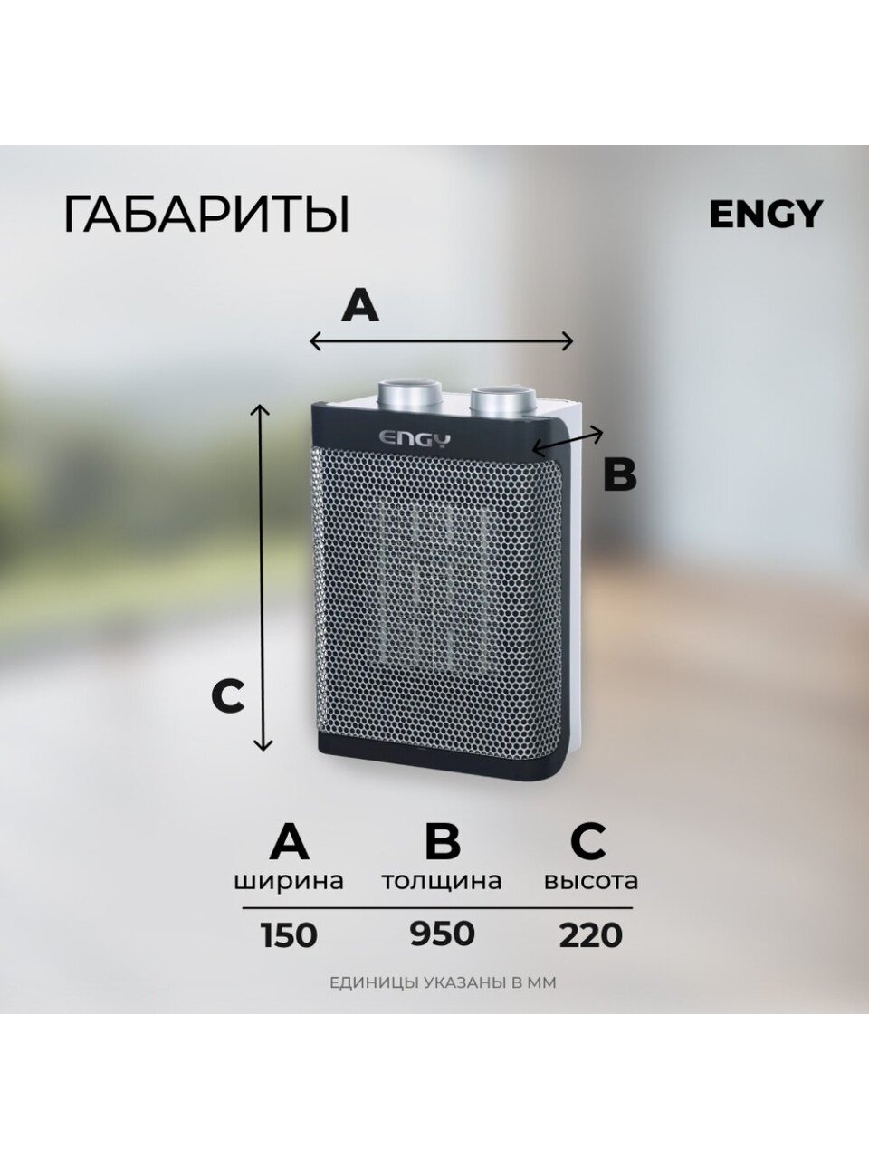 Тепловентилятор ENGY поможет Вам наполнить дом теплом. Изделие имеет керамический нагревательный элемент, который быстро осуществляет нагрев и не сжигает кислород. Это обеспечивает приятный микроклимат во всем помещении.