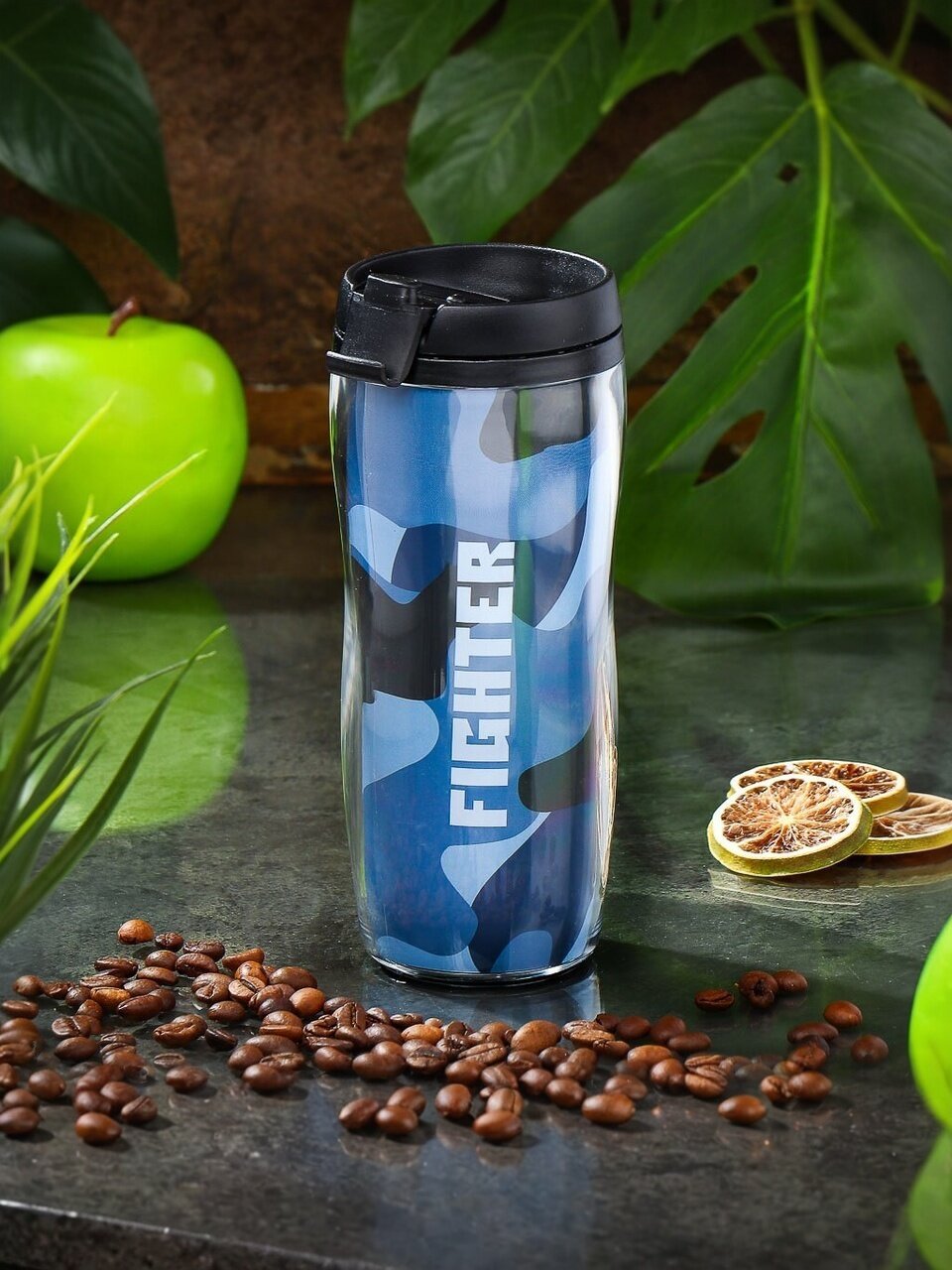 - Объём 0.38 л и прочный пластик — оптимально для кофе, чая, воды; подходит для города и путешествий.