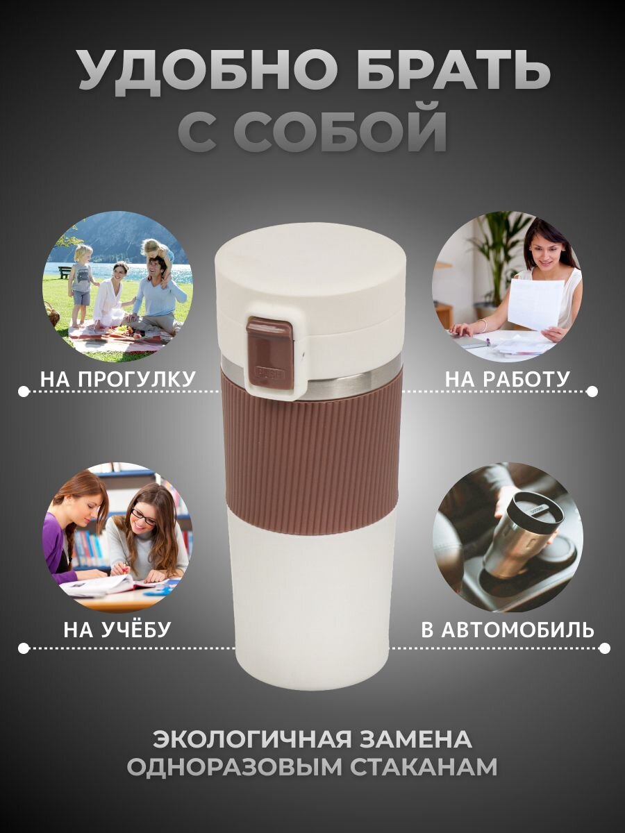 Термокружка Daniks 0,43 л: стильный выбор для города, авто и похода — держит тепло и холод до 2 часов, не проливается, легко моется. Успей купить выгодно!
