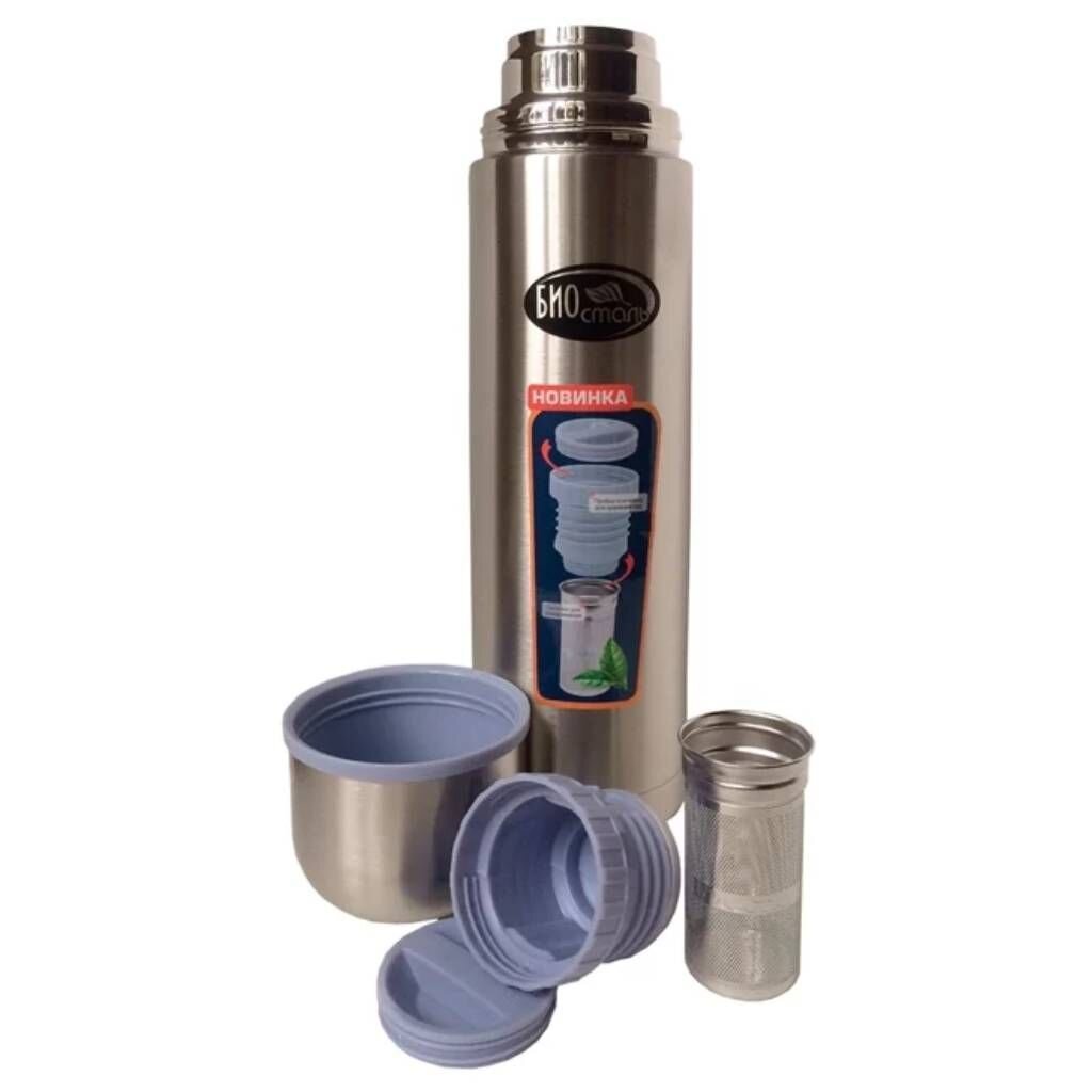 Термос Biostal 0.5 л из нержавеющей стали с ситечком — держит тепло до 24 часов, компактен, идеален для города, путешествий и подарка.