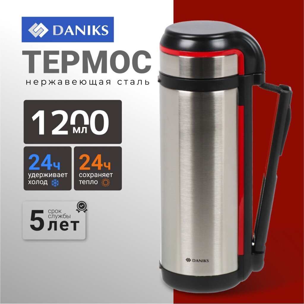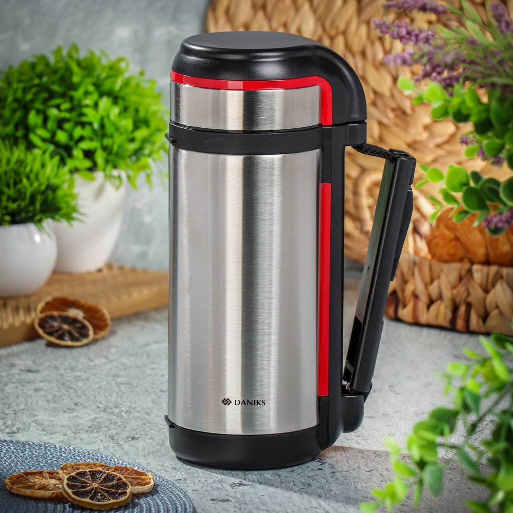 Термос Daniks станет надежным спутником в длительных поездках, на прогулках или во время путешествий. Конструкция термоса выполнена с применением долговечных материалов. Он позволяет сохранить температуру напитка на протяжении длительного времени, что очень удобно во время работы или занятий спортом.