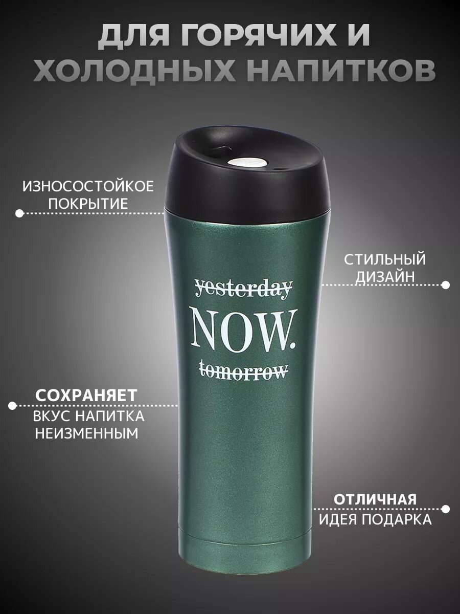 Термокружка Daniks 0.45 л: стильный изумруд, нержавеющая сталь, сохраняет напитки горячими и холодными до 2 часов — идеальный выбор для города и автомобиля.