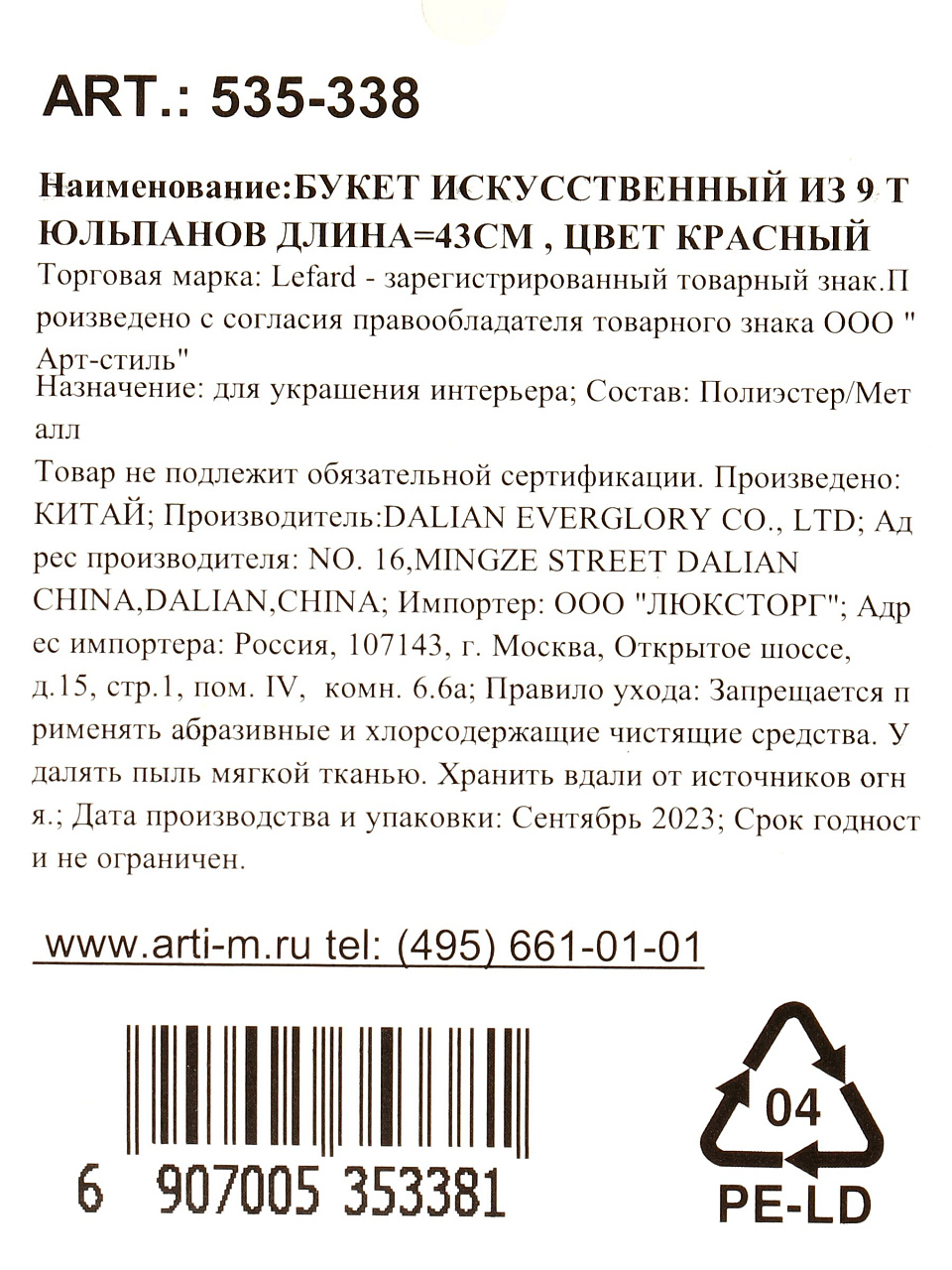 Вы можете приобрести «Цветочный букет искусственный Тюльпаны, декоративный, 9 шт, 43 см, 535-338» и другие товары в нашем интернет-магазине в Курске по низким ценам и с бесплатным самовывозом.