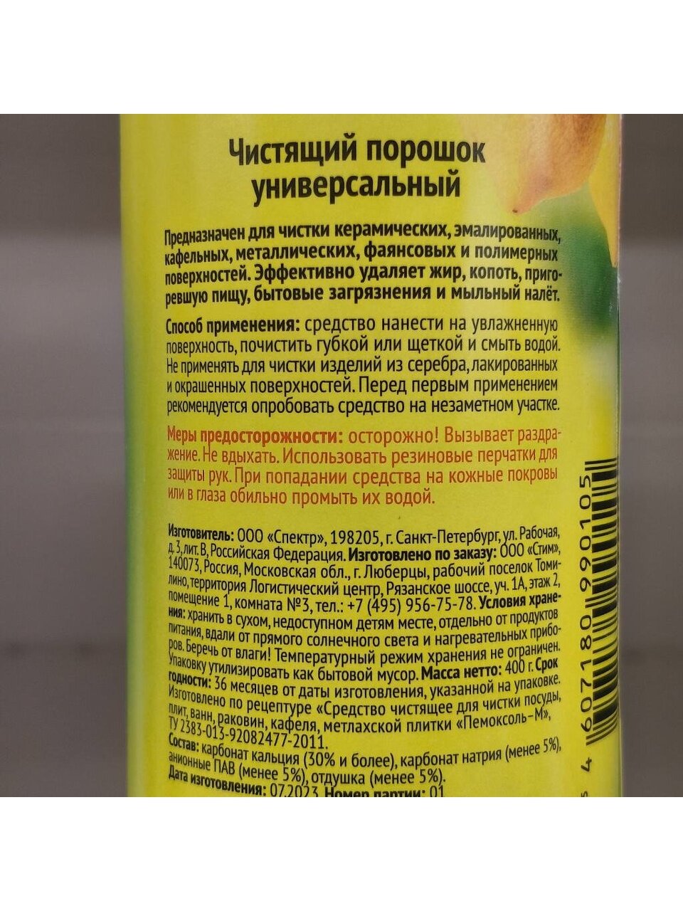 Откройте для себя универсальное чистящее средство "Новые горизонты" с ароматом лимона! Это идеальный помощник в поддержании чистоты в вашем доме. Порошковая форма и нейтральный тип продукта делают его безопасным для использования без перчаток. Вес 400 г обеспечивает длительное использование. Сделано в России.