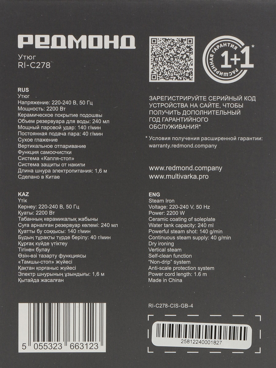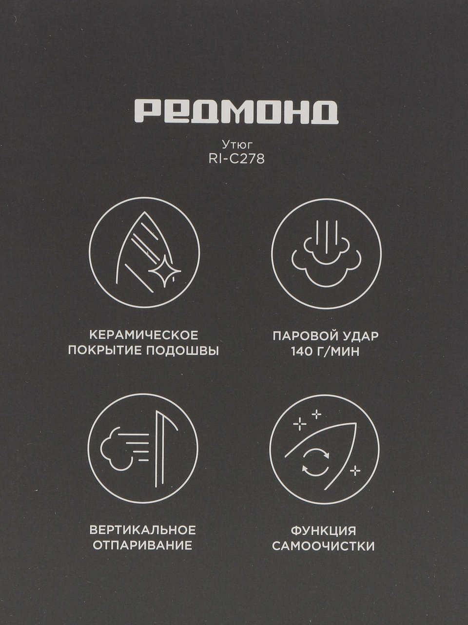 Оформите заказ на утюг Редмонд RI-C278 прямо сейчас — получите быструю доставку, гарантию 12 месяцев и оптимальное соотношение цены и качества. Идеальный вариант для тех, кто ценит удобство и долговечность техники.