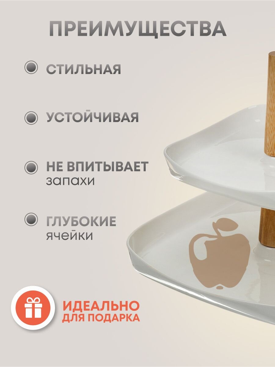 Двухъярусная ваза для фруктов выполнена из керамики в виде двух блюд на ножке. Ваза для фруктов станет идеальным украшением любой кухни или прекрасным подарком для вас и ваших близких.