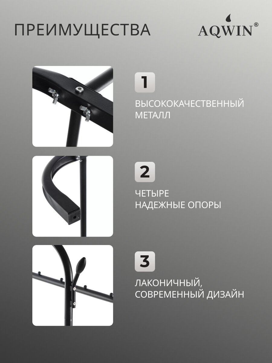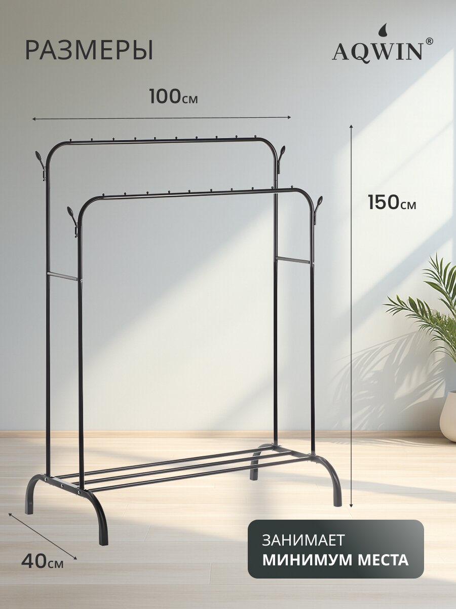 Вешалка напольная 110х55х150 см, Aqwin, металл, полка для обуви, 45 кг, Элит, VPF66, черная, двойная, с вешалками
