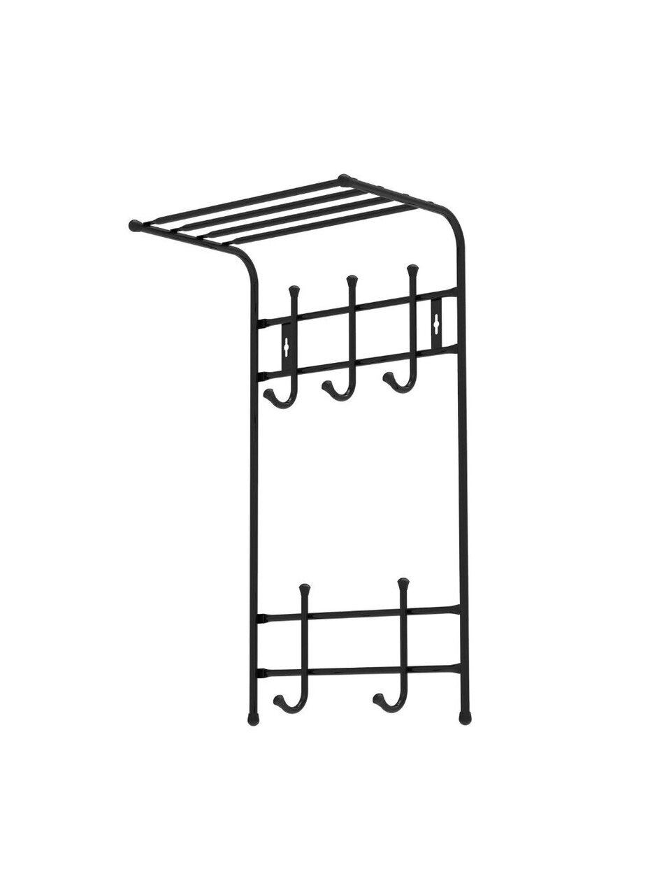 Часто спрашивают, чем отличается эта вешалка от аналогов? В отличие от пластиковых моделей, металл обеспечивает высокую прочность и устойчивость к повреждениям. Черное порошковое покрытие делает изделие менее марким и подчеркивает современный стиль. Вешалка подходит для крепления на разные типы стен — гипсокартон, бетон или дерево. Как использовать настенную вешалку с полкой? Просто закрепите на удобной высоте и используйте для хранения сезонных вещей или аксессуаров.