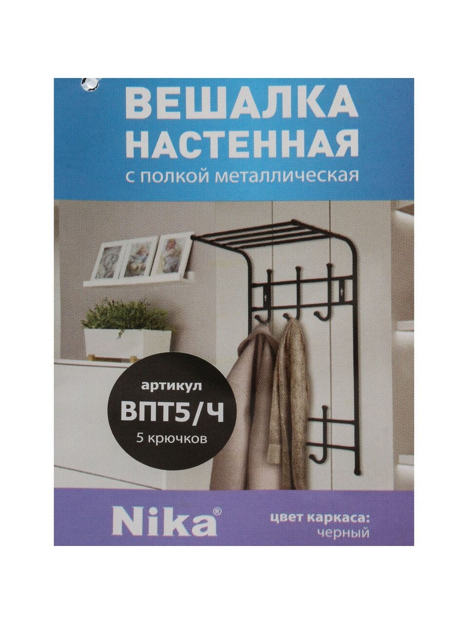 Вешалка настенная Nika ВПТ5 с 5 крючками и полкой: компактное решение для хранения одежды и аксессуаров в прихожей, на даче или в офисе.