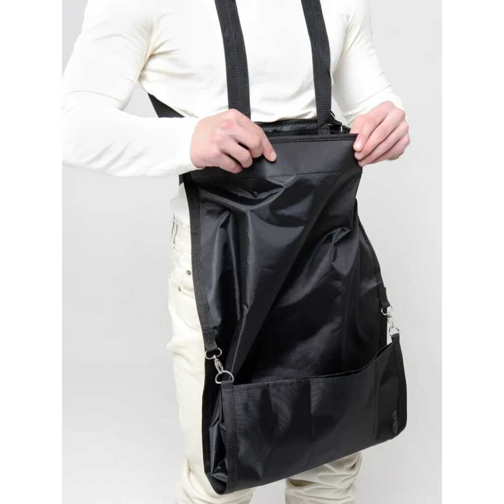 Фартук предназначен для сбора фруктов и овощей, помогает освободить руки для более эффективной работы. Основа ткани прорезиненная, плотная, грязе- и водоотталкивающая, лямки и пояс регулируются. После сбора урожая, застежка внизу отстегивается для легкости пересыпания собранного урожая в любую ёмкость. Имеются ручки для переноски. Регулируемый плечевой ремень, уменьшает нагрузку на спину и шею. Подкладка с защитным покрытием. Можно стирать.