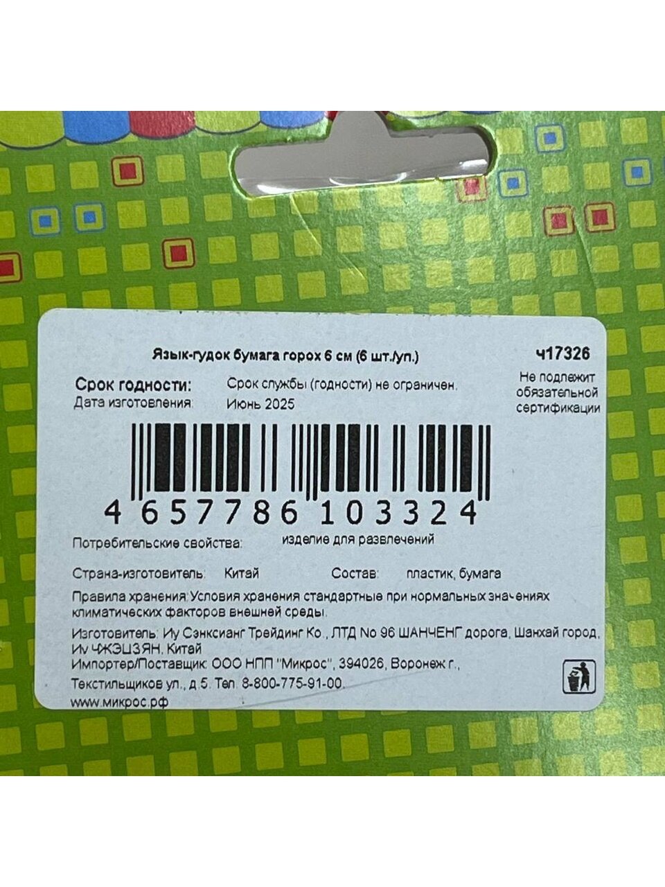 Вы можете приобрести «Язык-гудок 6 шт, Горох, ч17326» и другие товары в нашем интернет-магазине в Железногорске по низким ценам и с бесплатным самовывозом.