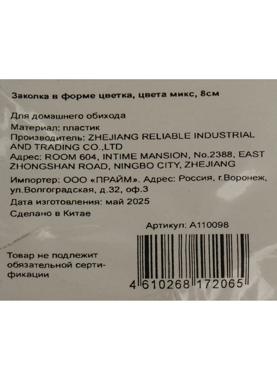 Заколка в форме цветка, цвета микс, 8см, A110098