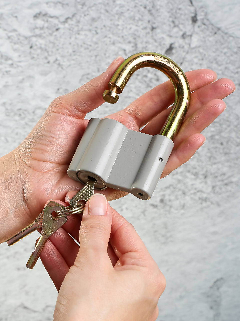 Ширина корпуса замка — 70 мм, материал — алюминий, механизм — дисковый. Такой размер подходит для большинства стандартных проушин и дверей подсобных помещений, гаражей, дачных строений.
