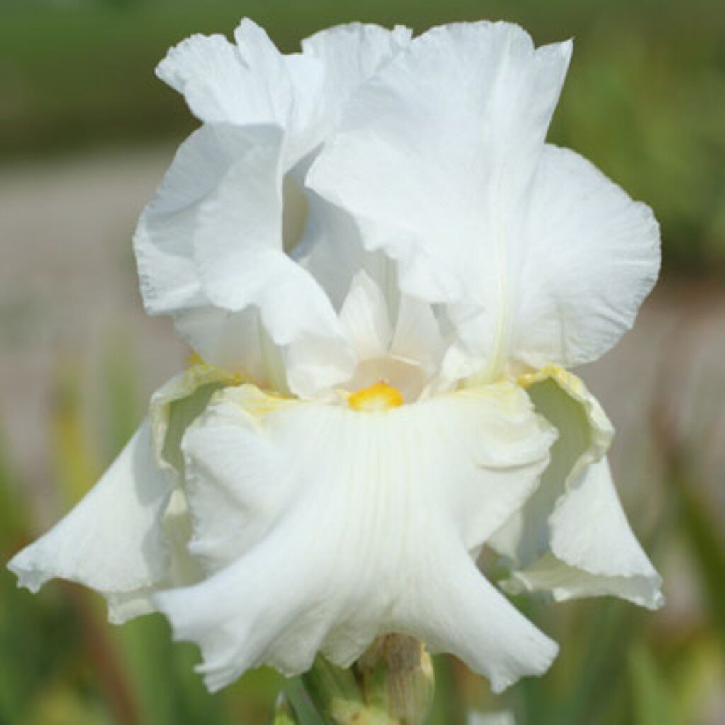 - Уникальный сорт с выразительными белыми цветками — редкость среди бородатых ирисов, эффектно смотрится в любом саду