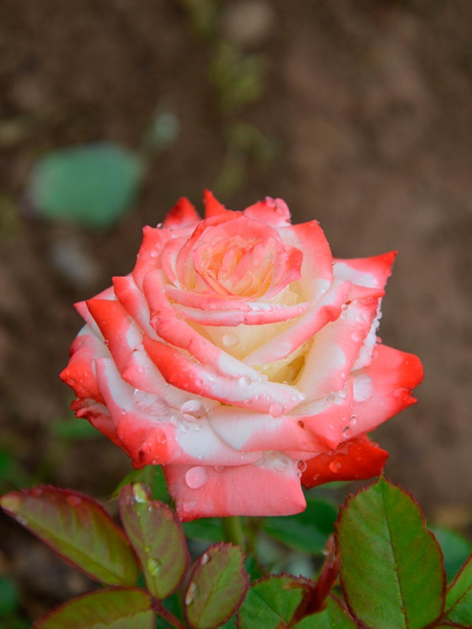 Саженец розы Императрица Фара: белые лепестки с кармино-красным обрамлением, устойчивость к болезням, эффектный подарок или украшение для дачи.